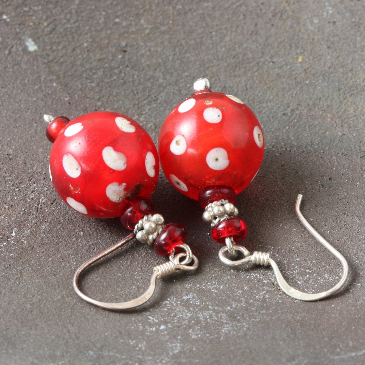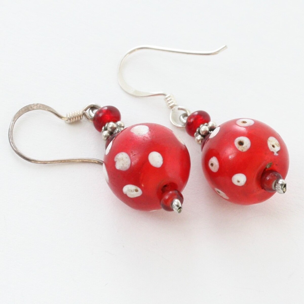 レッドスカンクと称させるファンシービーズ、鮮やかな赤が印象的な玉です。赤色ガラスを白色ガラスに被せたホワイトハーツにドットのアイ(眼)は護符の意味もあるそうです。